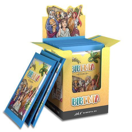 Der Bibenta-Dispenser ist eine schön gestaltete Box aus Karton, in der sich 100 Stickertüten (400 Sticker) befinden. Der Dispenser eignet sich besonders für Kindergruppen, die bei Bibenta mitmachen, oder für Buchhandlungen und Einzelhändler.