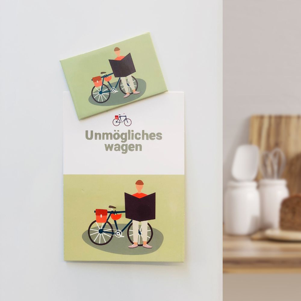 Magnet mit Postkarte 'Unm�gliches wagen'