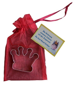 Geschenkideen, die auf den Geschmack bringen! Ausstechförmchen "Krone" aus Metall - hübsch als Geschenk verpackt im Organzasäckchen. Mit rückseitig beschreibbarem Grußkärtchen: "Die Krönung unseres Lebens ist der Zuspruch: Du bist Kind Gottes."