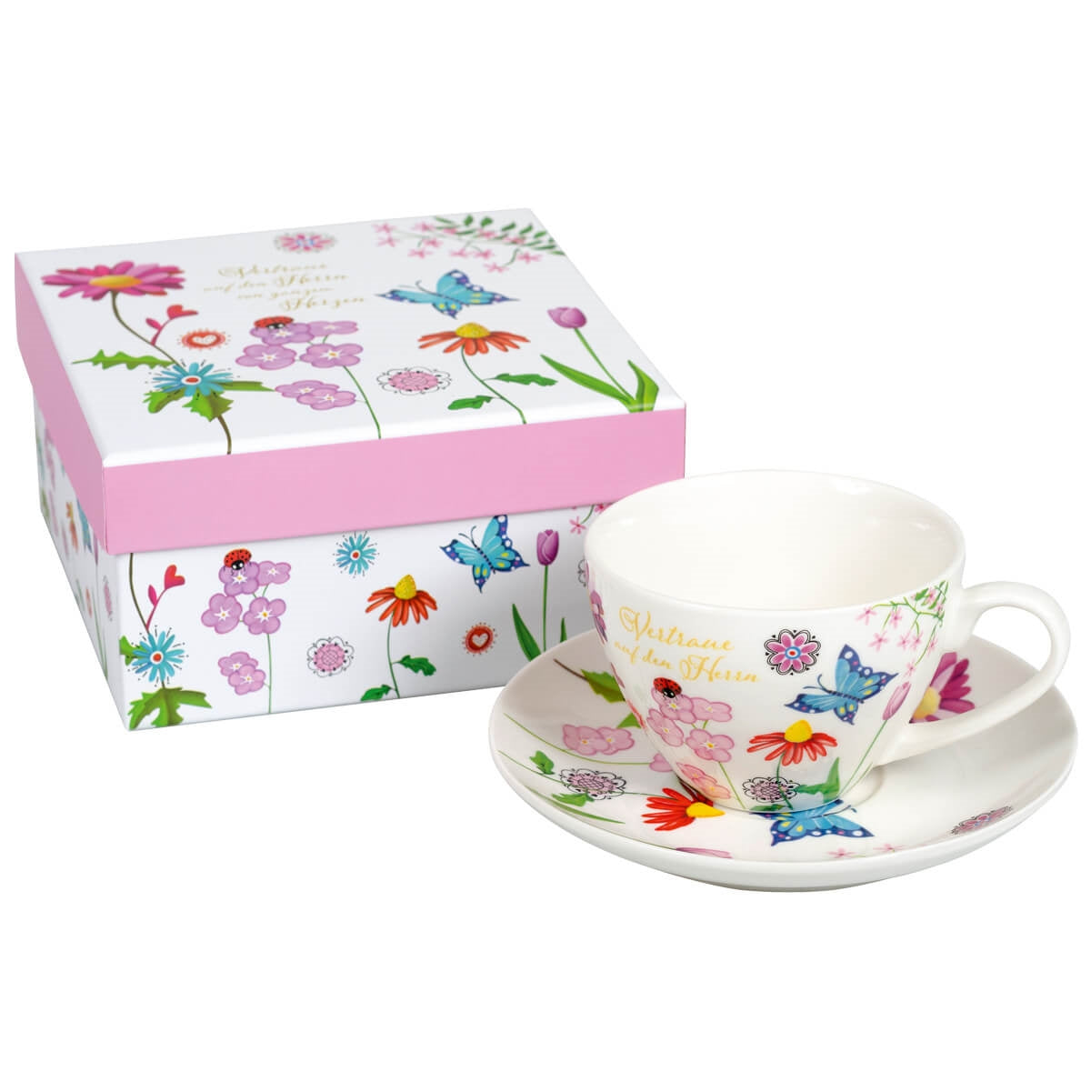 Tassen-Set 'Pinke Blumen' in Geschenkbox