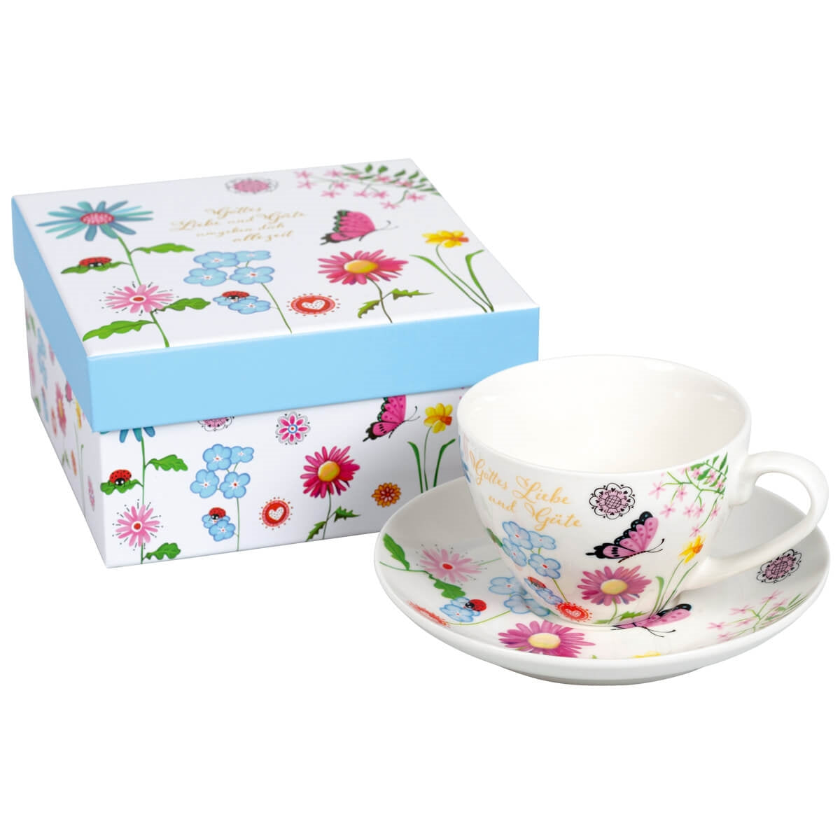 Tassen-Set 'Blaue Blumen' in Geschenkbox