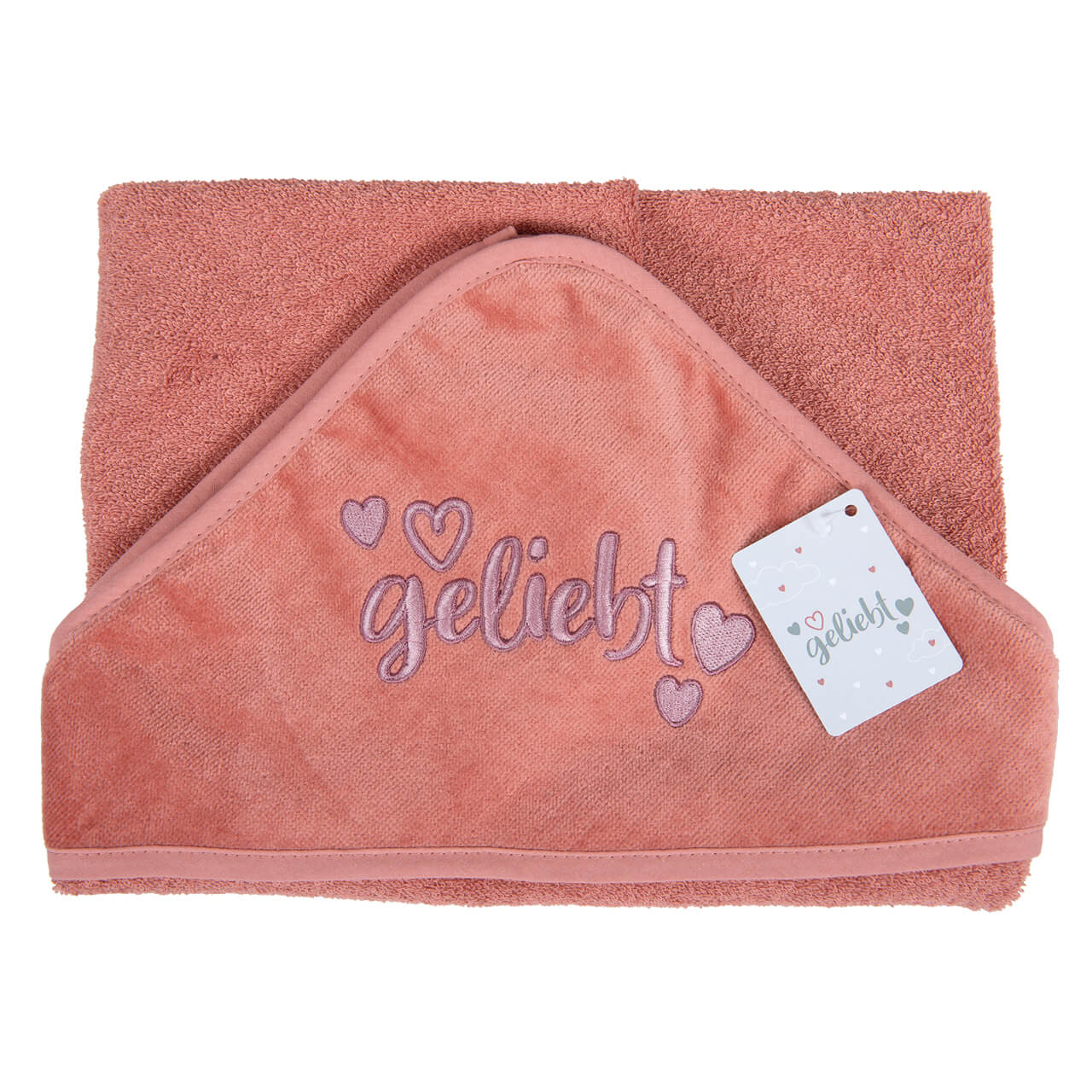 Kapuzenbadetuch in altrosa mit Stick 'geliebt'“und Herzen. Nach dem Badespaß ist dieses Tuch einfach herrlich zum Reinkuscheln und Wohlfühlen. Die praktische Kapuze schützt dabei das Köpfchen vor Zugluft. Ca. 75 x 75 cm. Frottee/Velours aus 100% Baumwolle, t (schadstoffgeprüft, gesundheitlich unbedenklich), waschbar bei 40 °C.