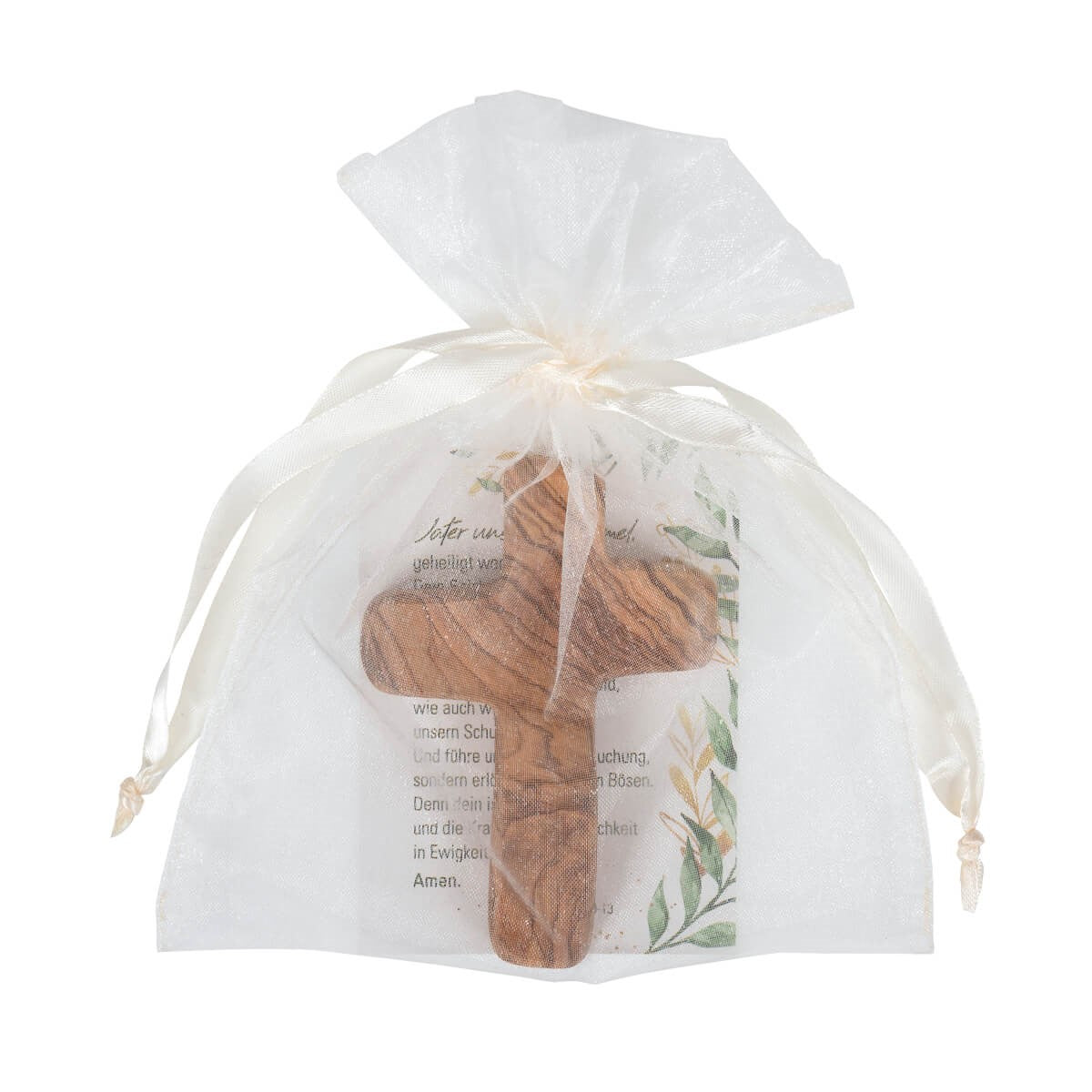 Aus Olivenholz. Handarbeit aus Bethlehem, Israel. Verpackt im Organzabeutel mit kleiner Karte "Vater unser". Handschmeichler liegen aufgrund ihrer Größe und Beschaffenheit gut und angenehm in der Hand. Das ideale Geschenk für Konfirmationen, Firmungen, Taufen und Krankenbesuche.