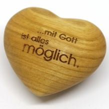 Der Handschmeichler in Herzform aus wunderschönem Obstholz, individuell in Farbe und Maserung. Einfach passend, um seine Gefühle auf eine besondere Art und Weise auszudrücken. Verschenken Sie das Herz und Sie können sich sicher sein, dass der Beschenkte lange seine Freude und Erinnerung an dieses persönliche Geschenk behält! Oder tragen Sie dieses Herz bei sich und lassen Sie sich von ihm erinnern, dass Gott in jeder Lebenssituation bei Ihnen ist, um Sie zu stärken!