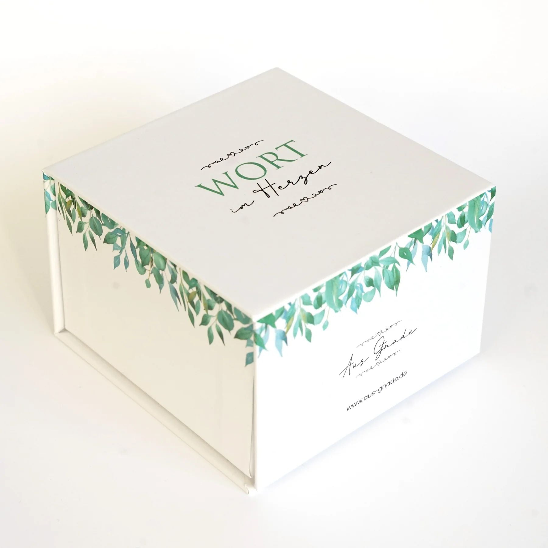 48 Bibelvers-Lernkarten ohne Box, zusätzlich 2 Karten mit Einleitung und Checkliste. Karten: 350 g starkes Papier mit abgerundeten Ecken, folienkaschiert. Karten-Größe 85 x 55 mm. // WORT IM HERZEN ist ein hilfreiches und praktisches Kartensystem, das das organisierte Erlernen ausgewählter Bibelverse effektiv unterstützt. // Worte der Heiligen Schrift: Lasst das Wort des Christus reichlich in euch wohnen in aller Weisheit. Kolosser 3,16a Ich bewahre dein Wort in meinem Herzen, damit ich nicht gegen dich sündige. Psalm 119,11