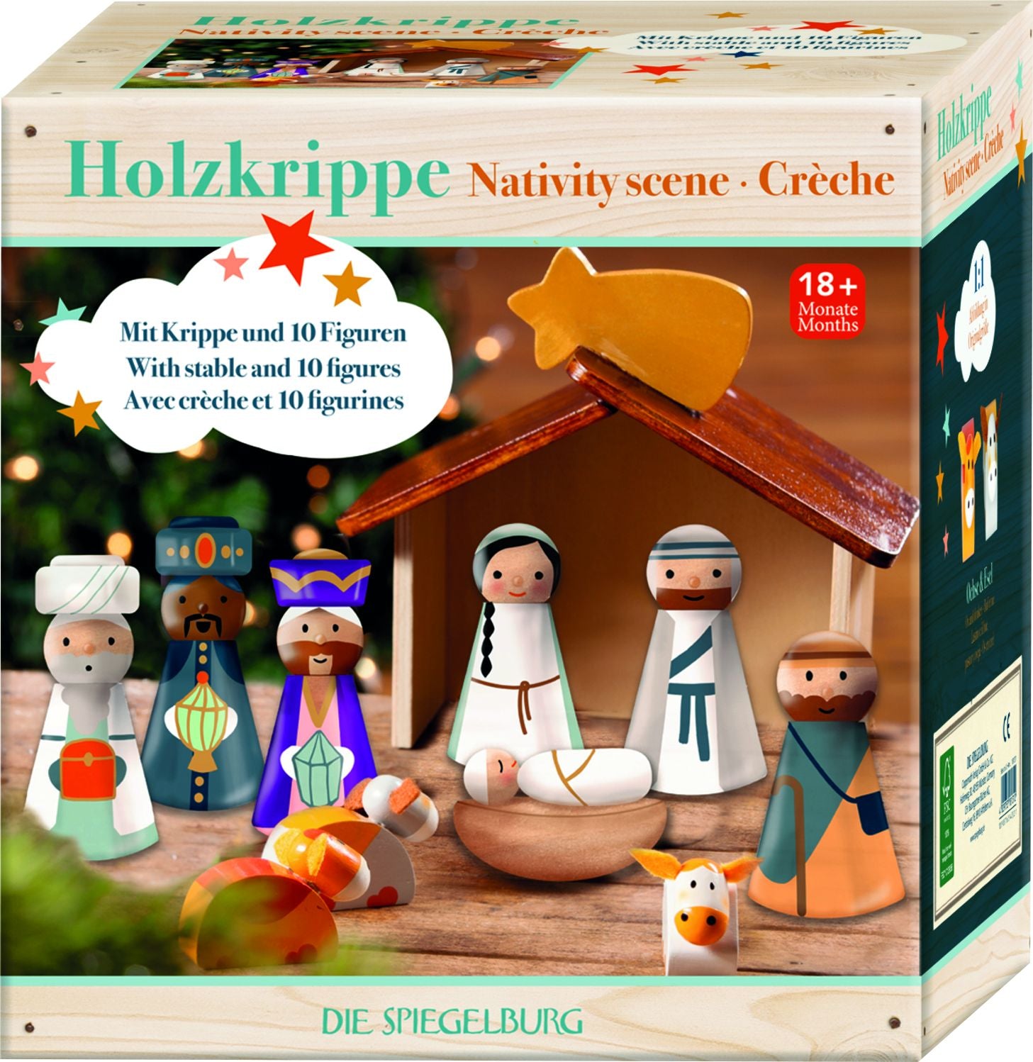 Material der Krippe mit 10 Figuren: Holz; Altersempfehlung: ab 18 Monaten. / Kleine Traditionen und Rituale machen die Weihnachtszeit besonders schön: Mit dieser hochwertigen Krippe aus Holz und den zehn liebevoll bemalten Figuren werden schon die Kleinsten spielerisch auf das bevorstehende Fest vorbereitet. Inhalt: Maria, Josef, Jesuskind, Ochse, Esel, Hirte, Schaf und die Heiligen Drei Könige.