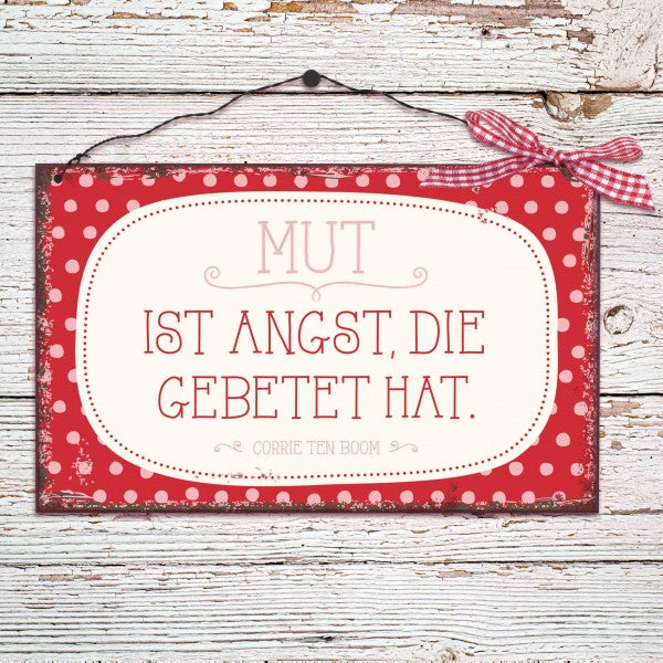 Holzschild groß 'Mut ist Angst, die gebetet hat'