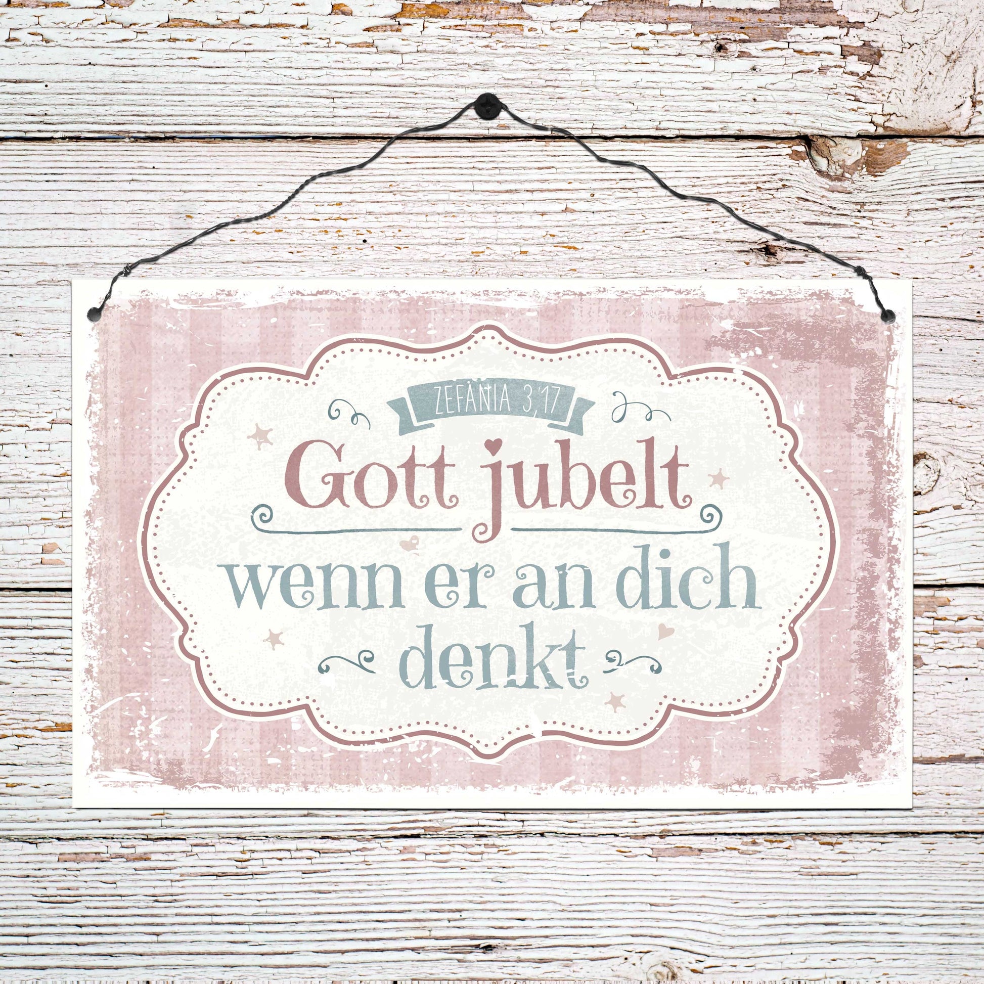 Holzschild groß 'Gott jubelt, wenn er an dich denkt.'