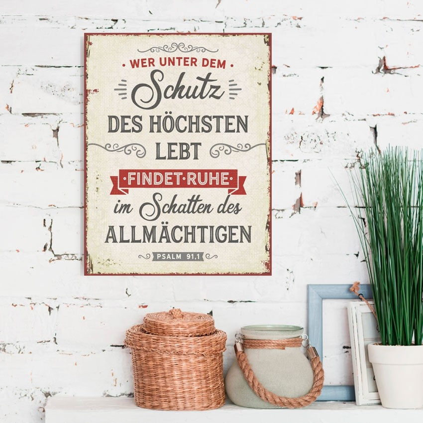 Metallschild 'Wer unter dem Schutz des Höchsten ...'