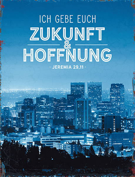Metallschild 'Ich gebe euch Zukunft und Hoffnung. Jeremia 29,11'