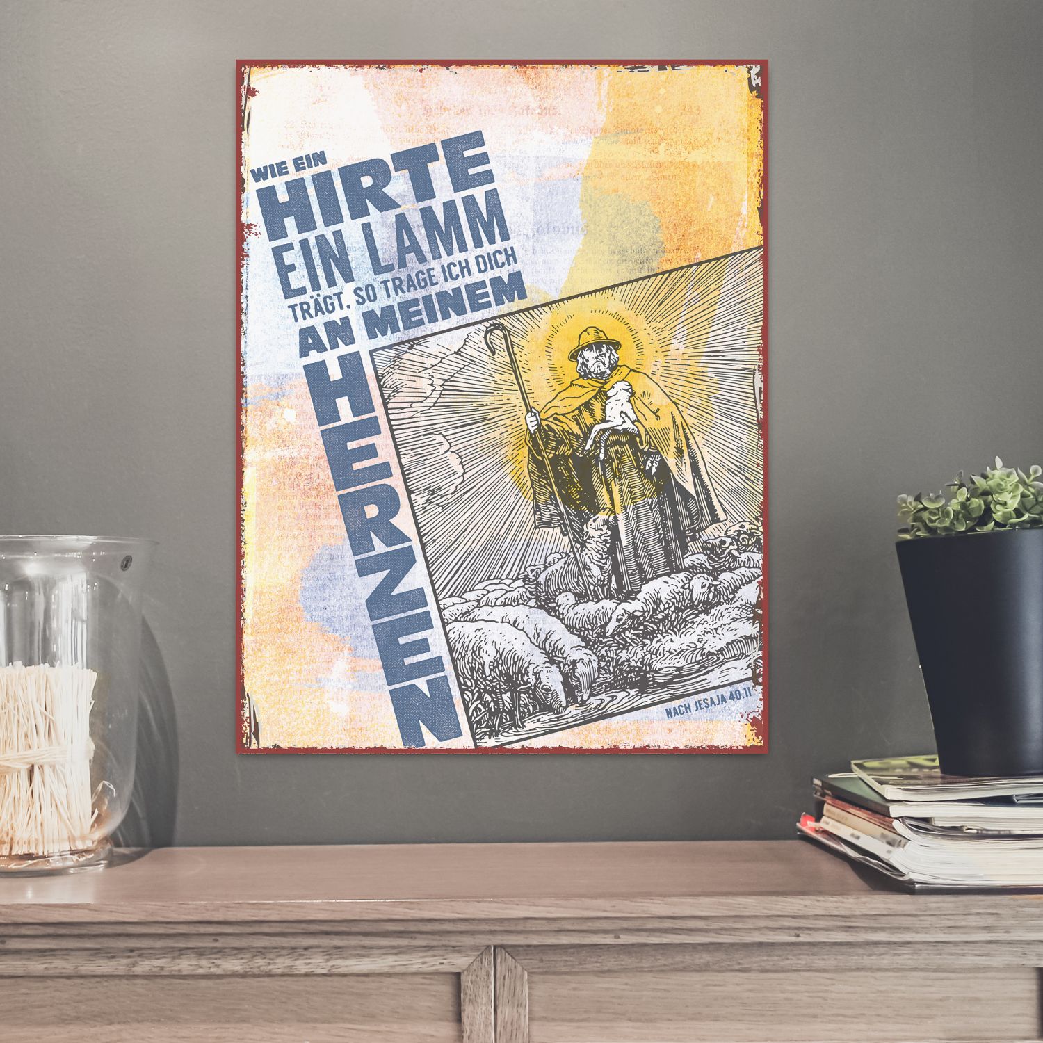 Metallschild 'Wie ein Hirte ein Lamm trägt, so trage ich dich an meinem Herzen. Nach Jesaja 40,11'