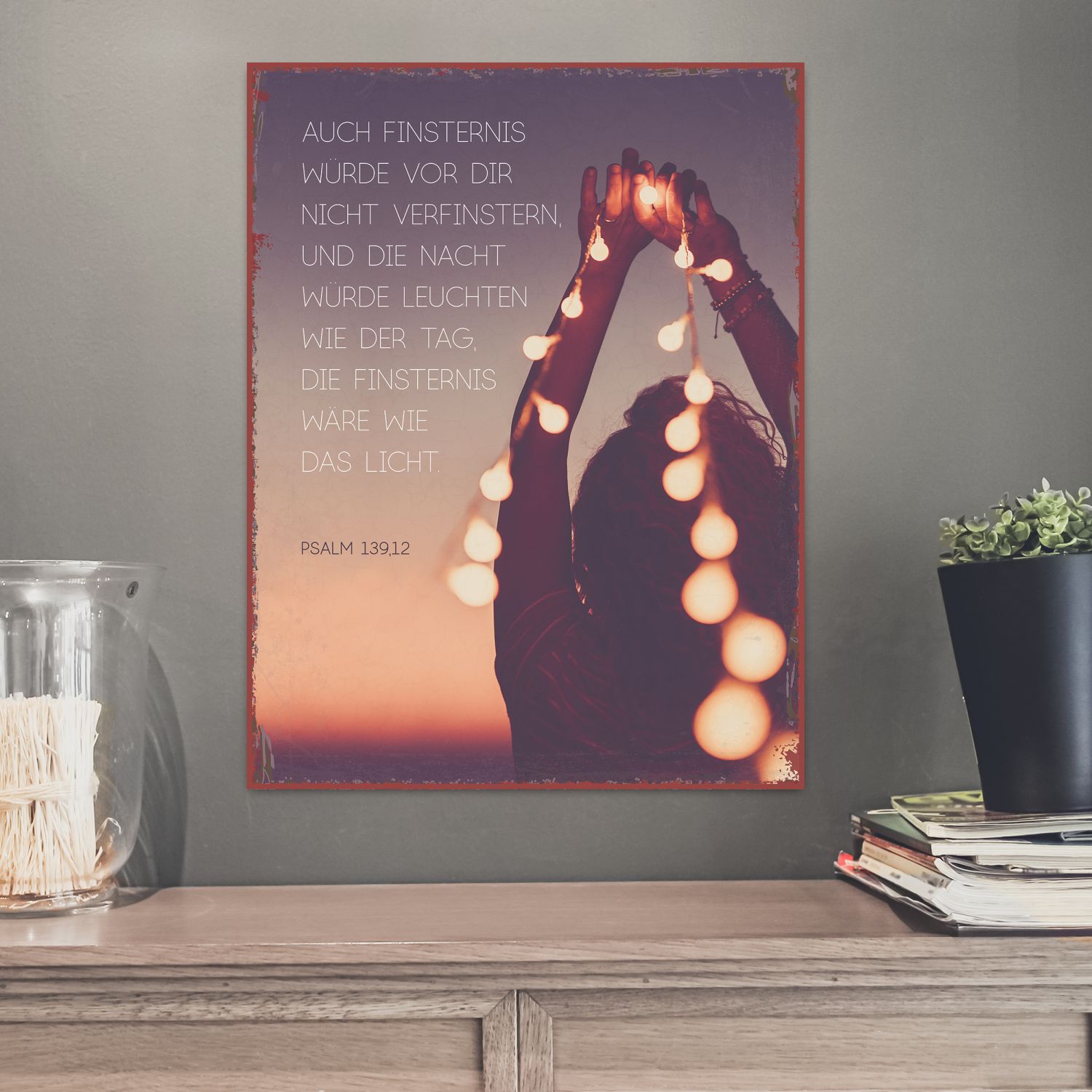 Metallschild 'Auch Finsternis würde vor nicht verfinstern, und die Nacht würde leuchten wie der Tag... Psalm 139,12'