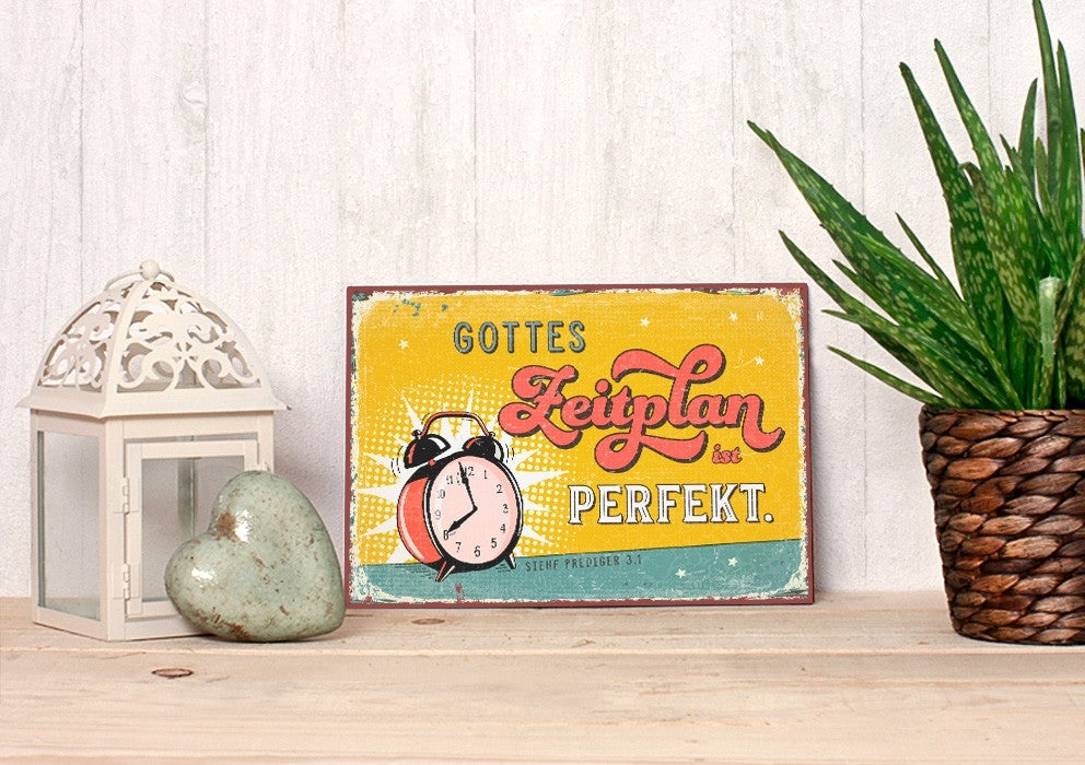 Metallschild 'Gottes Zeitplan ist perfekt'