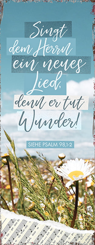 Metallschild 'Singt dem Herrn ein neues Lied, denn er tut Wunder! Siehe Psalm 98 1+2'