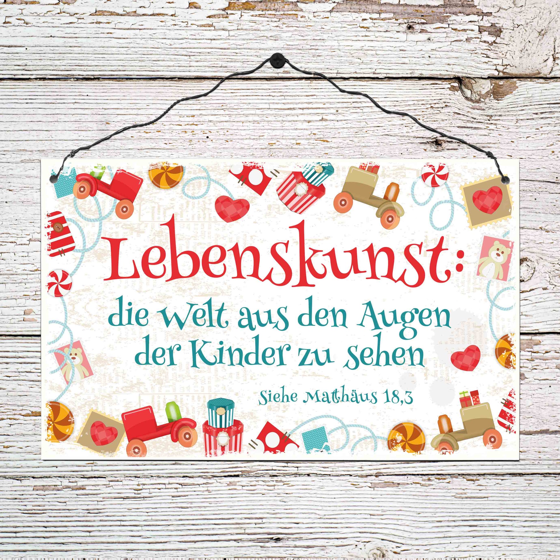 Das Holzschild ist für trockene Innenräume geeignet. Mit doppeltem Draht zum Aufhängen und Aufstellmöglichkeit. Es wird ein Holzstift mitgeliefert, der auf der Rückseite angebracht werden kann. Handmade by Come & See vor Ort in Deutschland.Nostalgie pur: Ein hochwertiges Holzschild im Shabbystyle mit dem gewissen Etwas. Dieses Dekoschild im Vintage-Stil verleiht einem Zimmer einen besonderen Charakter. Ein Bibelvers oder Sinnspruch wird so zu einem echten Hingucker an der Wand.