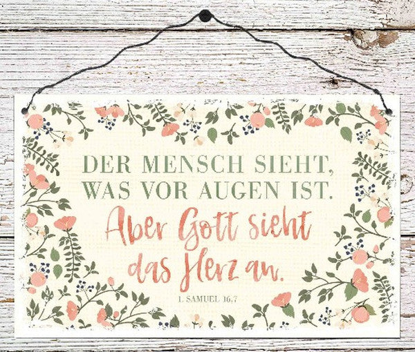 Das Holzschild ist für trockene Innenräume geeignet. Mit doppeltem Draht zum Aufhängen und Aufstellmöglichkeit. Es wird ein Holzstift mitgeliefert, der auf der Rückseite angebracht werden kann. Handmade by Come & See vor Ort in Deutschland.Nostalgie pur: Ein hochwertiges Holzschild im Shabbystyle mit dem gewissen Etwas. Dieses Dekoschild im Vintage-Stil verleiht einem Zimmer einen besonderen Charakter. Ein Bibelvers oder Sinnspruch wird so zu einem echten Hingucker an der Wand.