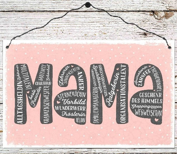 Das Holzschild ist für trockene Innenräume geeignet. Mit doppeltem Draht zum Aufhängen und Aufstellmöglichkeit. Es wird ein Holzstift mitgeliefert, der auf der Rückseite angebracht werden kann. Handmade by Come & See vor Ort in Deutschland.Ein hochwertiges Holzschild im Shabbystyle mit dem gewissen Etwas. Dieses Dekoschild im Vintage-Stil verleiht einem Zimmer einen besonderen Charakter. Ein Bibelvers oder Sinnspruch wird so zu einem echten Hingucker an der Wand. // Vollständiger Text: Mama - Alltagsheldin, Zuhörerin, Multitalent, beste Freundin, Chauffeur, Gartenfee, Schönheit, Krankenschwester, Lehrerin, Sonnenschein, Anker, Sterneköchin, Vorbild, Wunderwerk, Trösterin, Heldin, Familienmanagerin, Geduldsprofi, Bastelkönigin, Sorgenvernichterin, Ratgeberin, Organisationstalent, Animateurin, Zahnfee, Energiebündel, Geschenk des Himmels, Shoppingqueen, Wegweiserin.