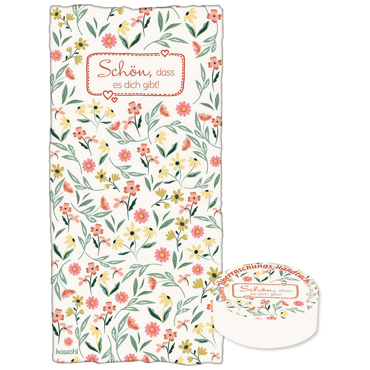 Überraschungs-Handtuch in Gästehandtuchgröße, in Form (H 3,5 cm/Dm 6,5 cm) gepresst, aus 100 % Baumwolle. / Überraschungs-Handtuch: Die "wundersame" Entfaltung. Besonders kuschelige Qualität mit brillanter Druckqualität. Witziges Geschenk und gleichzeitig brauchbar für den Alltag! / WARN-/SICHERHEITSHINWEISE: Achtung! Nicht geeignet für Kinder unter 3 Jahren - Erstickungsgefahr durch Kleinteile. Vor dem ersten Gebrauch vollständig in Wasser auflösen und gründlich ausspülen. Nur unter Aufsicht von Erwachsenen verwenden.