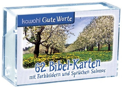 62 Karten (8,5 x 5,5 cm, Farbfotos) in Kunststoff-Klappbox. Gott spricht zu uns durch Worte der Bibel. In jeder Situation unseres Lebens finden wir darin Rat, Trost und Hilfe. Ganz persönlich für uns und diesen Augenblick scheint mancher Vers auf uns zu warten. Geburtstage, Jubiläen und Jahreswechsel sind Momente, in …