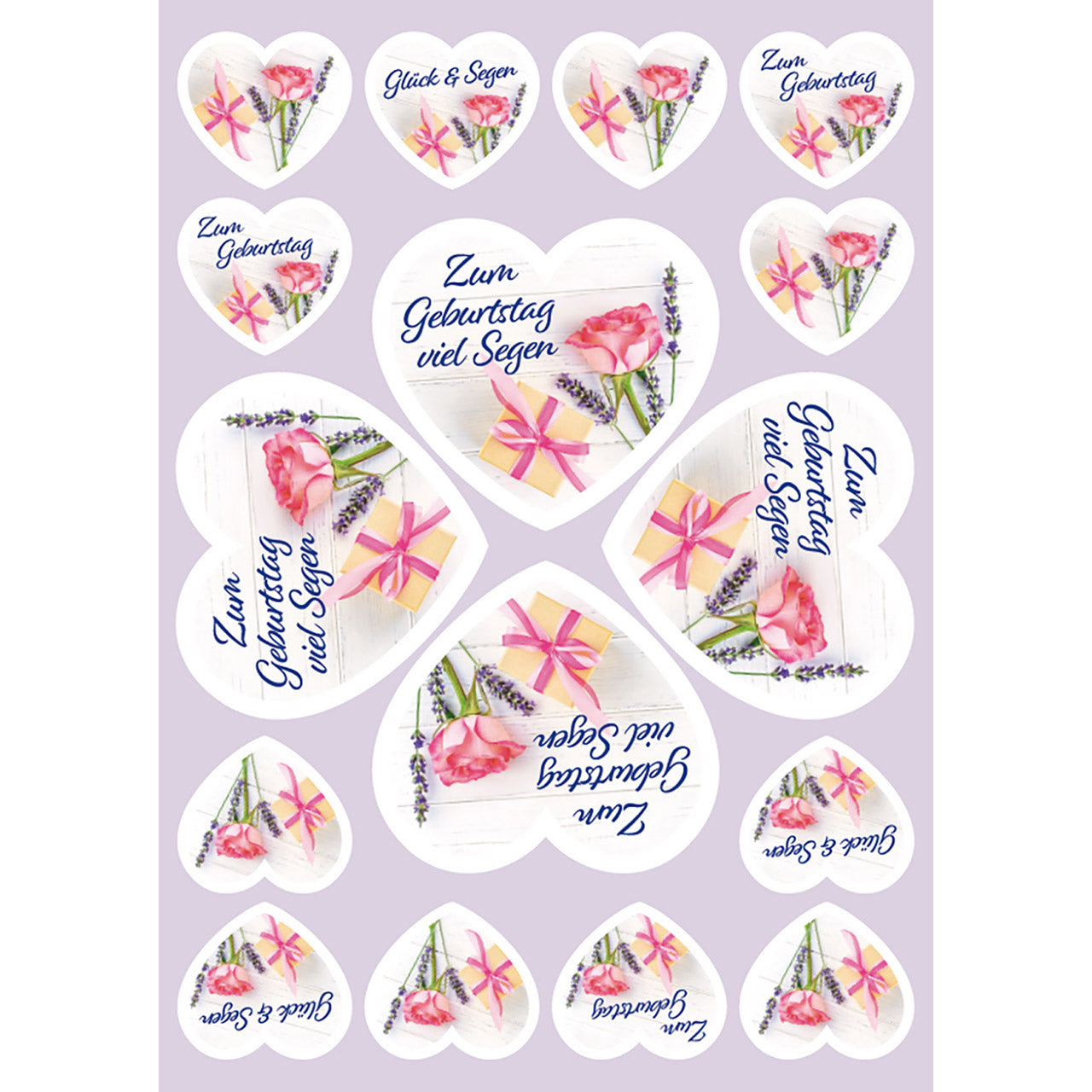 Aufkleber-Grußkarte Geburtstag 4 Ex. Herzen