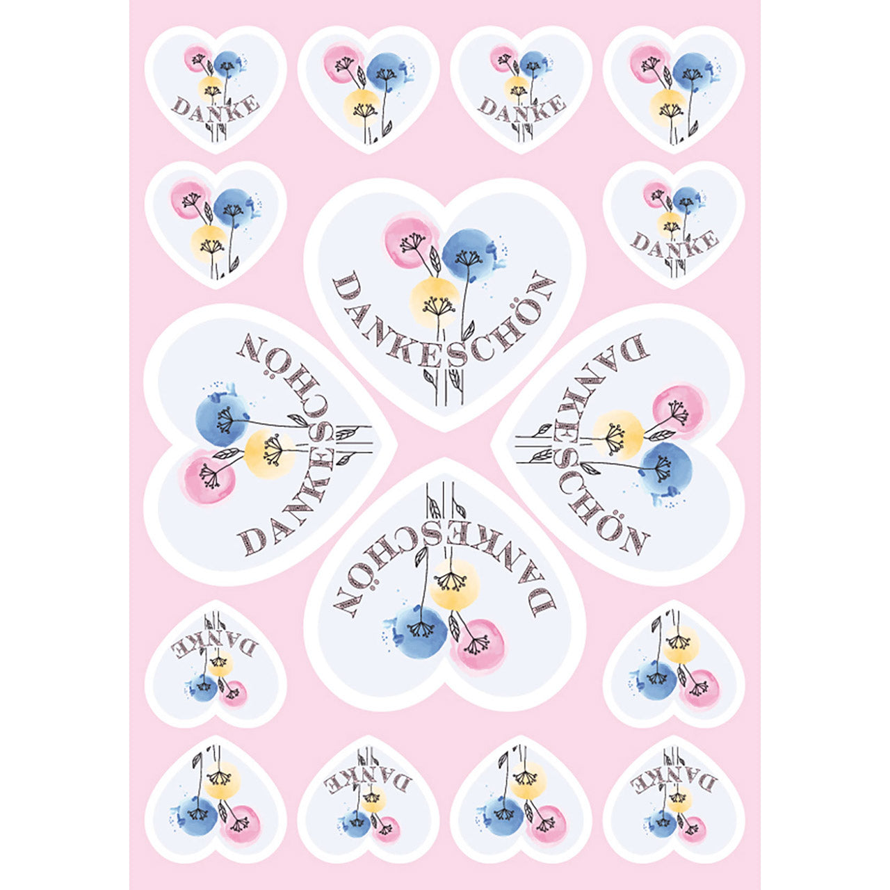 Aufkleber-Grußkarte Dank 12 Ex. Herzen